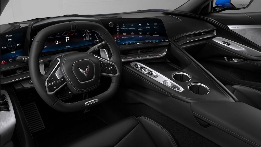 Memory Driver & Passenger Convenience Package, Preferred Equipment Group 2LZ (2 Cargo Nets, Bose Performance Series Sound System w/14 Speakers, Driver Power Bolster Seat Adjuster, Electrical Theft Deterrent System, HD Front & Rear Vision Cameras, Heated & Vented Driver & Passenger Seats, Heated Steering Wheel, Passenger Power Bolster Seat Adjuster, Performance Data & Video Recorder, Power Driver Lumbar Control Seat Adjuster, Power Passenger Lumbar Control Seat Adjuster, Power-Adjustable Outside Heated Mirrors, Rear Cross Traffic Alert, Side Blind Zone Alert, Universal Home Remote, Vehicle Inclination Theft Deterrent Sensor, Vehicle Interior Movement Theft Deterrent Sensor, and Wireless Phone Charging), 14 Speakers, 4-Wheel Antilock 4-Wheel Disc Carbon Ceramic Brakes, 4-Wheel Disc Brakes, 8-Way Power Driver Seat Adjuster, 8-Way Power Passenger Seat Adjuster, ABS brakes, Adaptive suspension, Air Conditioning, Alloy wheels, AM/FM radio: SiriusXM, Auto High-beam Headlights, Auto-dimming door mirrors, Auto-dimming Rear-View mirror, Automatic temperature control, Blue-Painted Calipers, Brake assist, Bumpers: body-color, Compass, Dark Gray Metallic-Painted Calipers, Delay-off headlights, Driver door bin, Driver vanity mirror, Dual front impact airbags, Dual front side impact airbags, Electronic Stability Control, Emergency communication system: OnStar and Chevrolet connected services capable, Exterior Parking Camera Rear, Four wheel independent suspension, Front anti-roll bar, Front Bucket Seats, Front Center Armrest, Front dual zone A/C, Front License Plate Bracket, Front reading lights, Fully automatic headlights, Garage door transmitter, GT1 Bucket Seats, Heads-Up Display, Heated door mirrors, Heated front seats, Heated steering wheel, Illuminated entry, Leather Shift Knob, Leather steering wheel, Low tire pressure warning, Memory seat, Mulan Lthr Seating Surfaces w/Perforated Inserts, Navigation System, Occupant sensing airbag, Outside temperature display, Overhead console, Panic alarm, Passenger door bin, Passenger vanity mirror, Power door mirrors, Power driver seat, Power passenger seat, Power steering, Power windows, Premium audio system: Chevrolet Infotainment 3 Premium, Radio data system, Radio: Infotainment System w/Google Built-In, Rear anti-roll bar, Rear window defroster, Remote keyless entry, Security system, Speed control, Speed-sensing steering, Spoiler, Sport steering wheel, Steering wheel memory, Steering wheel mounted audio controls, Tachometer, Telescoping steering wheel, Tilt steering wheel, Traction control, Trip computer, Turn signal indicator mirrors, Variably intermittent wipers, Ventilated front seats, Visible Carbon Fiber Removable Roof Panel, Voltmeter, and Wheels: 20 x 10 Fr/21 x 13 Rr Titanium Satin. call dealer for details