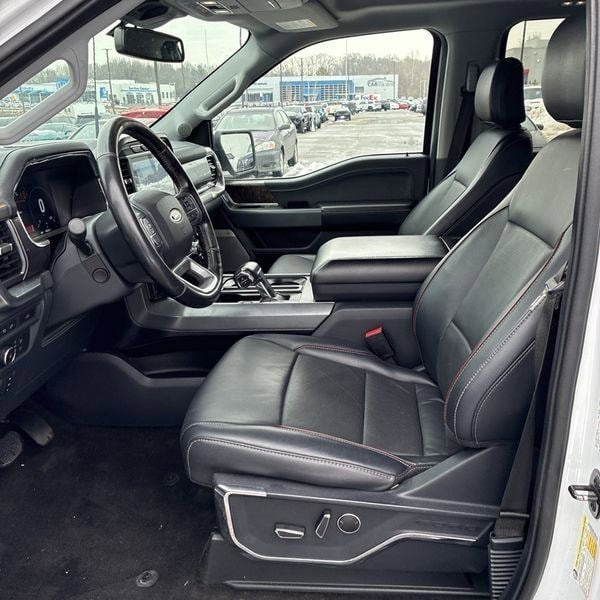 Recent Arrival! Bed Utility Package (BoxLink, LED Box Lighting, Power Tailgate, and Tailgate Step w/Tailgate Work Surface), Equipment Group 502A High (2nd Row Heated Seats, Heated Steering Wheel, Leather-Trimmed Bucket Seats, LED Projector w/Dynamic Bending Headlamps, Onboard 400W Outlet, Power Glass Sideview Mirr w/Chrome Skull Caps, Power Tilt/Telescoping Steering Column w/Memory, Radio: B&O Sound System by Bang & Olufsen, Rain-Sensing Wipers, Universal Garage Door Opener, and Wireless Charging Pad), Ford Co-Pilot360 Assist 2.0 (DISC) (Connected Built-In Navigation, Evasive Steering Assist, Intelligent Adaptive Cruise Control w/Stop & Go, Intersection Assist, and Speed Sign Recognition), Lariat Chrome Appearance Package (6" Bright Polished Running Board, Chrome 2-Bar Grille w/4 Minor Bars, Chrome Door & Tailgate Handles w/Body-Color Bezel, Chrome Single-Tip Exhaust, Chrome Skull Caps on Exterior Mirrors, and Wheels: 18" Chrome-Like PVD), Max Trailer Tow Package (Class IV Trailer Hitch Receiver, Extended Range 36 Gallon Fuel Tank, Integrated Trailer Brake Controller, and Pro Trailer Backup Assist), 18" Machined-Aluminum Wheels, 4-Wheel Disc Brakes, 7 Speakers, ABS brakes, Adjustable pedals, Air Conditioning, Alloy wheels, AM/FM radio: SiriusXM with 360L, Auto High-beam Headlights, Auto Start-Stop Removal, Auto-dimming door mirrors, Auto-dimming Rear-View mirror, Automatic temperature control, Brake assist, Bumpers: chrome, Compass, Delay-off headlights, Driver door bin, Driver vanity mirror, Dual front impact airbags, Dual front side impact airbags, Electronic Stability Control, Emergency communication system: SYNC 4 911 Assist, Exterior Parking Camera Rear, Front anti-roll bar, Front Center Armrest w/Storage, Front dual zone A/C, Front fog lights, Front reading lights, Front wheel independent suspension, Fully automatic headlights, Heated door mirrors, Heated front seats, Illuminated entry, Leather-Trimmed 40/20/40 Front Seat, LED Sideview Mirror Spotlights, Low tire pressure warning, Memory seat, Occupant sensing airbag, Outside temperature display, Overhead airbag, Overhead console, Panic alarm, Passenger door bin, Passenger vanity mirror, Pedal memory, Power door mirrors, Power driver seat, Power passenger seat, Power steering, Power windows, Radio data system, Radio: AM/FM SiriusXM w/360L, Rear reading lights, Rear seat center armrest, Rear step bumper, Rear window defroster, Remote keyless entry, Security system, Speed control, Speed-sensing steering, Split folding rear seat, Steering wheel mounted audio controls, SYNC 4 w/Enhanced Voice Recognition, Tachometer, Telescoping steering wheel, Tilt steering wheel, Traction control, Tray Style Floor Liner (47W), Trip computer, Turn signal indicator mirrors, Twin Panel Moonroof, Variably intermittent wipers, Ventilated front seats, Voltmeter, and Wheels: 20" Chrome-Like PVD.