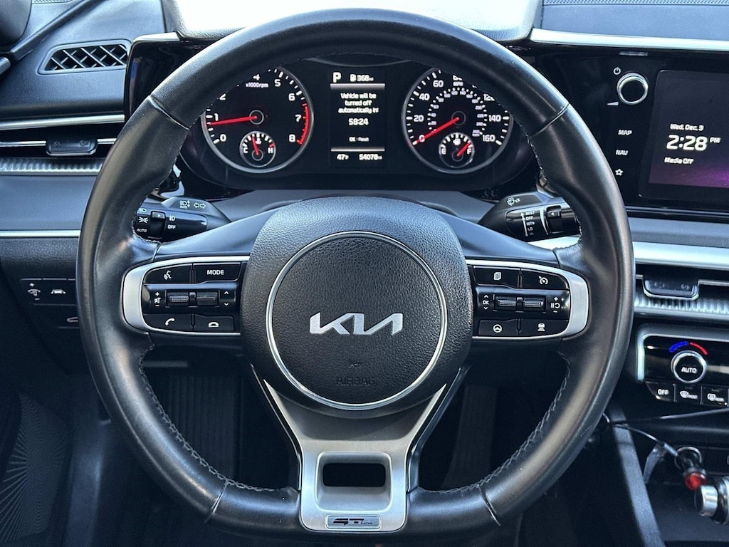 2023 KIA K5 GT-LINE, 18 GLOSS BLACK WHEELS, REAR SPOILER, PANORAMIC MOONROOF, APPLE CARPLAY AND ANDROID AUTO CAPABLE, SMART CRUISE CONTROL, HIGHWAY DRIVE ASSIST, REAR VIEW CAMERA WITH DYNAMIC GUIDELINES, REMOTE START, TILT AND TELESCOPIC STEERING COLUMN, REAR OCCUPANT ALERT AND SO MUCH MORE PLEASE CONTACT ONE OF OUR CERTIFIED PRE -OWNED SALES ADVISORS FOR COMPLETE DETAILS
